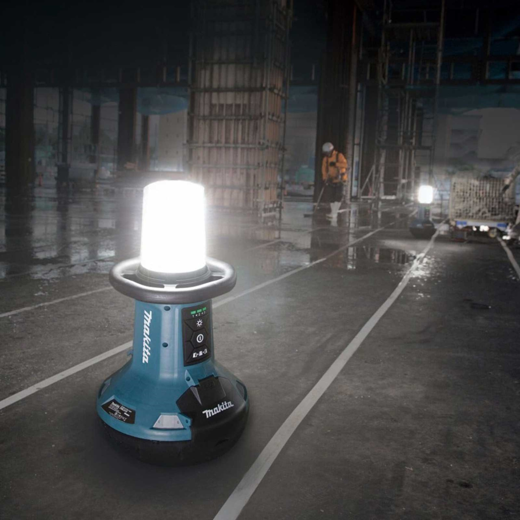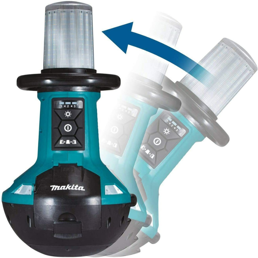 La linterna de área LED funciona con baterías recargables LXT de 14,4V/18V o mediante un cable de red (230V), lo que la convierte en un producto adaptable a diferentes situaciones de trabajo. Al utilizar el cable de red, es posible conectar y manejar hasta ocho focos de construcción. Además, esta linterna de área tiene una potencia luminosa ajustable en tres niveles (1.500 / 3.000 / 5.500 lúmenes) y permite seleccionar la zona de iluminación.